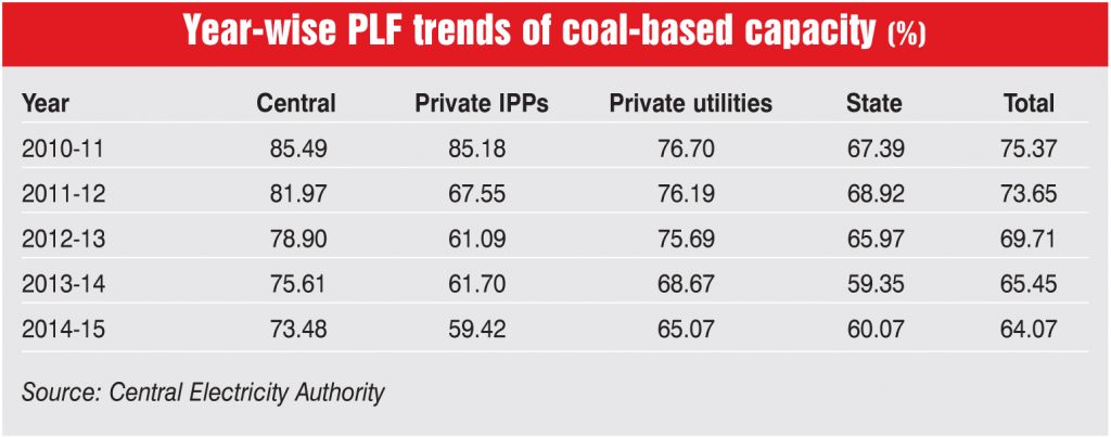 The average plant load factor (PLF) of coal- and lignite- based plants has been declining consistently since 2007-08, going from over 78 per cent to less than 65 per cent in 2014-15. In 2015-16, the average PLF of coal-based plants stood at 61.42 per cent while that of lignite-based plants stood at 68.83 per cent for the April-December period.