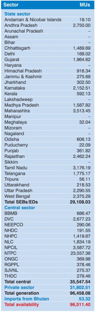 Generation: March 2016 March 2016 May 8, 2016 Total power generation stood at 96.46 billion units. At around 35.55 billion units and 31.8 billion units respectively, the central and private sectors accounted for the major share of generation.