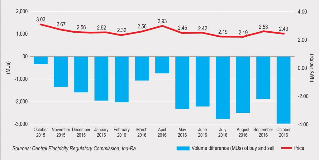 Power capacity addition in India is based on the five-year demand growth estimates prepared by the Central Electricity Authority (CEA). The CEA estimates are, in turn, based mainly on projections of the country’s GDP growth. Over the past few decades, the real growth in power demand has not matched up to the growth assumptions/CEA estimates. This can be due to factors such as less energy-intensive service sectors driving economic growth rather than the manufacturing sector. This is further exacerbated by the poor performance of distribution companies, which are plagued by high aggregate technical and commercial (AT&C) losses and resort to load- shedding rather than serving the latent demand due to poor recovery. This lack of sufficient offtake has led to large capacities of power plants not getting sufficient loads to serve. India’s per capita power consumption (1,010 kWh per annum) is very low compared to other countries such as China (4,000 kWh per annum) and developed countries (about 15,000 kWh per annum). Although efforts have been made to boost residential demand and the number of unelectrified villages has reduced to nearly half (6,175 as on December 31, 2016; Source: CEA) since the beginning of this financial year (11,344), a lot needs to be done on the industrial power consumption front. India has 60-90 GW of DG set capacity and about 60 GW of thermal generating capacity for captive, largely grid-connected generation, which has been set up by industries due to the absence or inadequacy of reliable grid-based power supply.