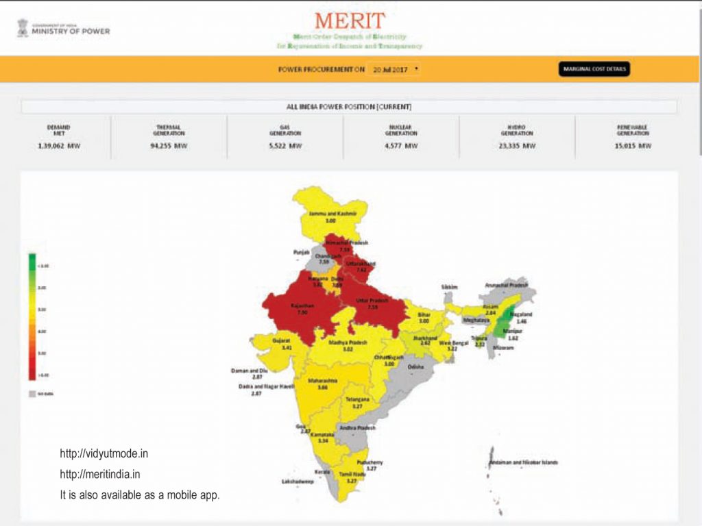 In the series of web portals and mobile apps being launched by the government to promote transparency and efficiency in the power sector, the MERIT (Merit Order Despatch of Electricity for Rejuvenation of Income and Transparency) portal/app has been the most recent addition. The portal has been developed by the Ministry of Power (MoP) in association with Power System Operation Corporation Limited (POSOCO) and the Central Electricity Authority (CEA), to manage and track the merit order despatch of power.