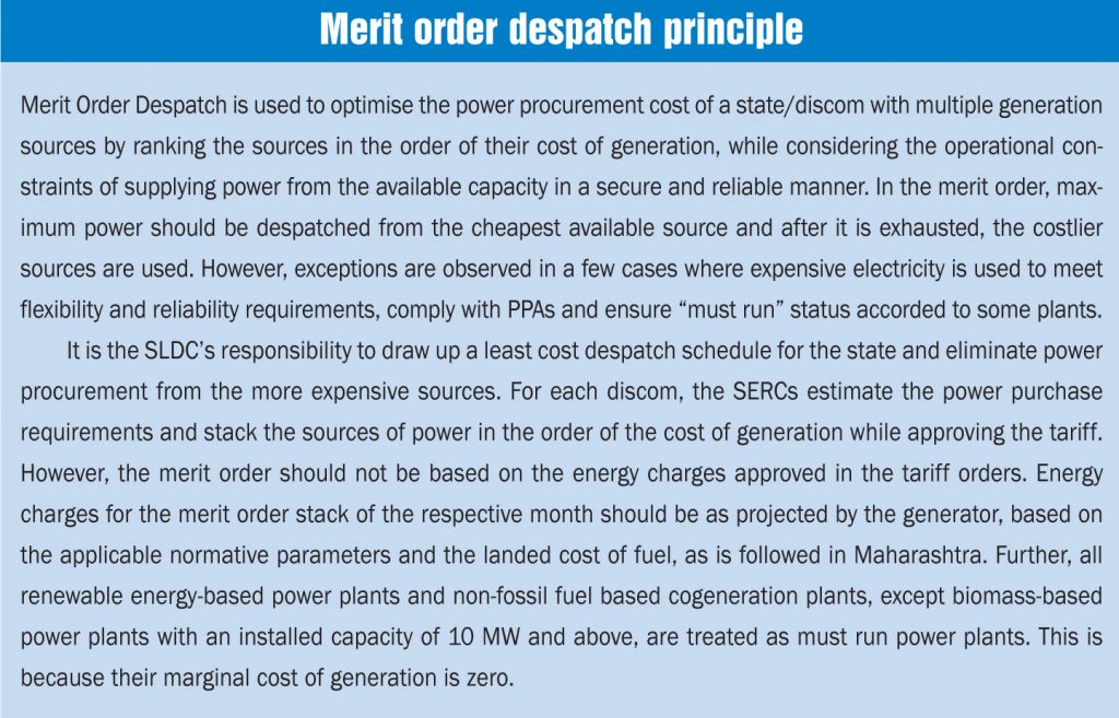 Some of the other recommendations of the committee pertaining to merit order operation were formulation of detailed guidelines/framework for the state electricity regulatory commissions (SERCs), preparation of merit order at state periphery on the basis of variable cost of generation along with transmission losses, and consideration of inter-state transmission charges only for short-term transactions while preparing the merit order stack.
