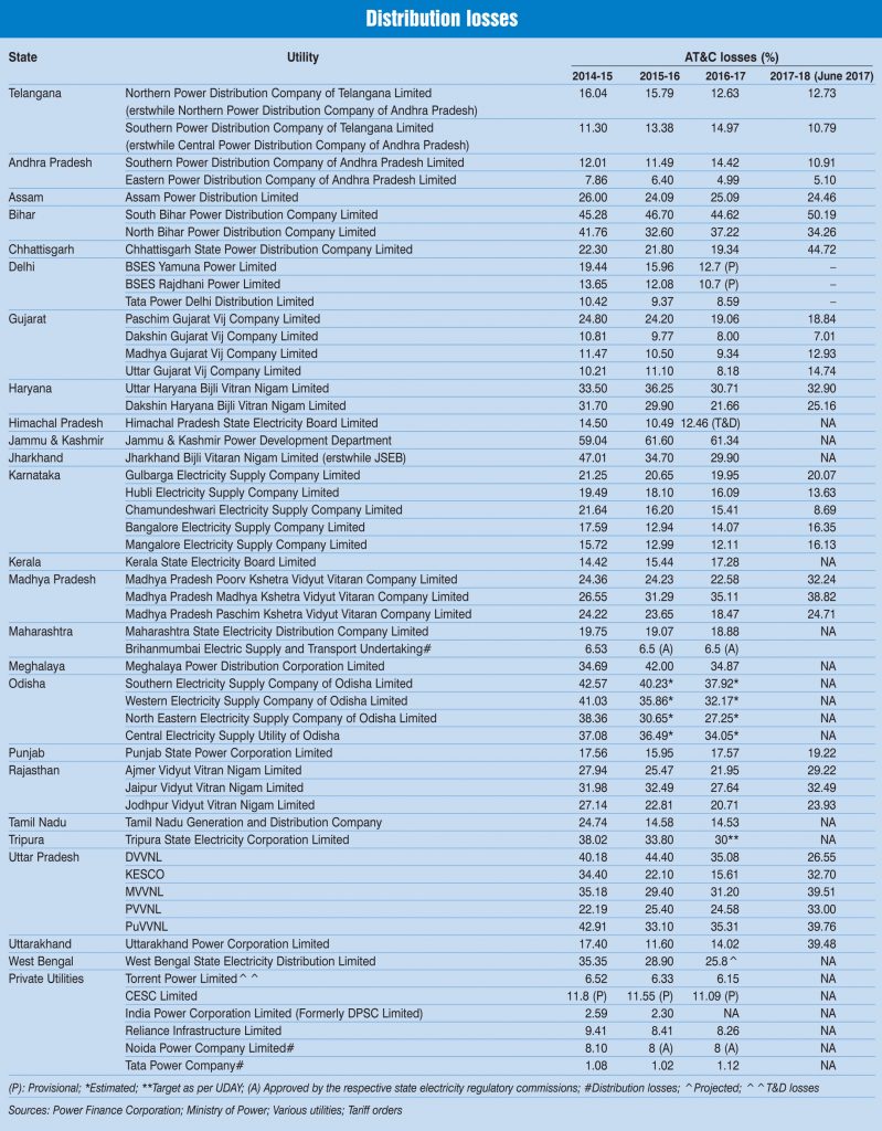 Other state utilities that reported AT&C losses less than 15 per cent during 2016-17 are Mangalore Electricity Supply Company Limited, Northern Power Distribution Company of Telangana Limited, Southern Power Distribution Company of Telangana Limited, Himachal Pradesh State Electricity Board Limited, Uttarakhand Power Corporation Limited, Bangalore Electricity Supply Company Limited, Southern Power Distribution Company of Andhra Pradesh Limited and Tamil Nadu Generation and Distribution Company.