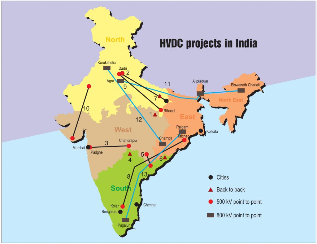 Several ±500 kV HVDC lines were developed during the 1990s and 2000s to create transmission corridors for the transfer of power from generation clusters (hydropower in the northeast and northern regions, and coal-based power in the eastern and western regions) to concentrated power demand pockets in the northern, western and southern regions.