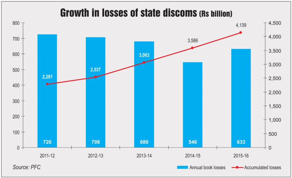 While some states, including Tamil Nadu, Rajasthan, Haryana, Kerala, Chhattisgarh and Madhya Pradesh, showed a substantial improvement in terms of a reduction in book losses, others like Maharashtra, Uttar Pradesh, Punjab, Andhra Pradesh and Jharkhand witnessed an increase in book losses. Five states – Maharashtra, Uttar Pradesh, Rajasthan, Tamil Nadu and Madhya Pradesh – accounted for over 80 per cent of the total losses in 2015-16.