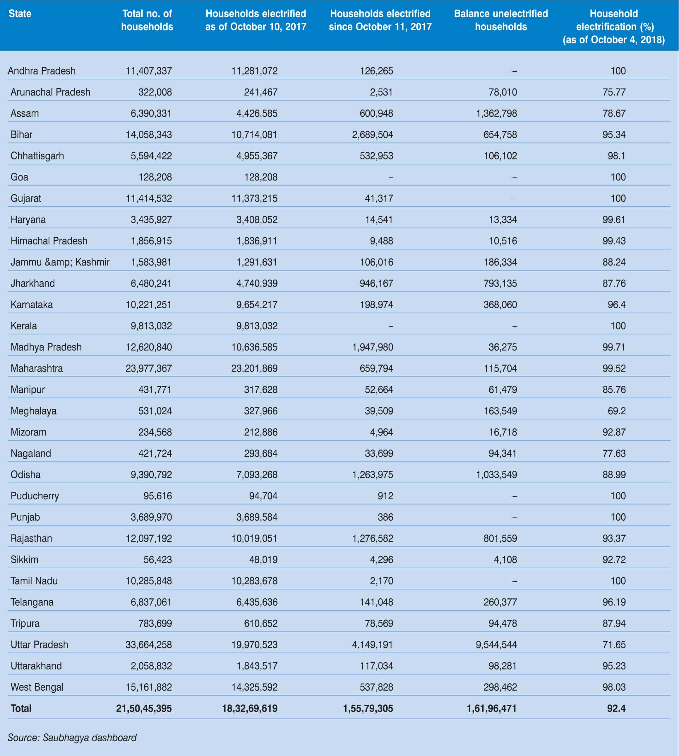 Saubhagya Update: Household electrification status, by state Household electrification status, by state September 11, 2018 Â