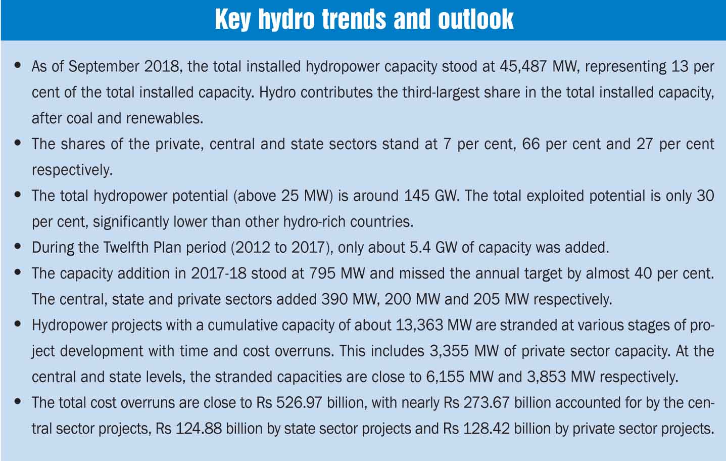 As a result, growth in the segment has been sluggish in recent years. Private sector interest has been stagnating, and only 7 per cent of the total hydro capacity installed has been commissioned by private players since the segment was opened to private participation in 1991.