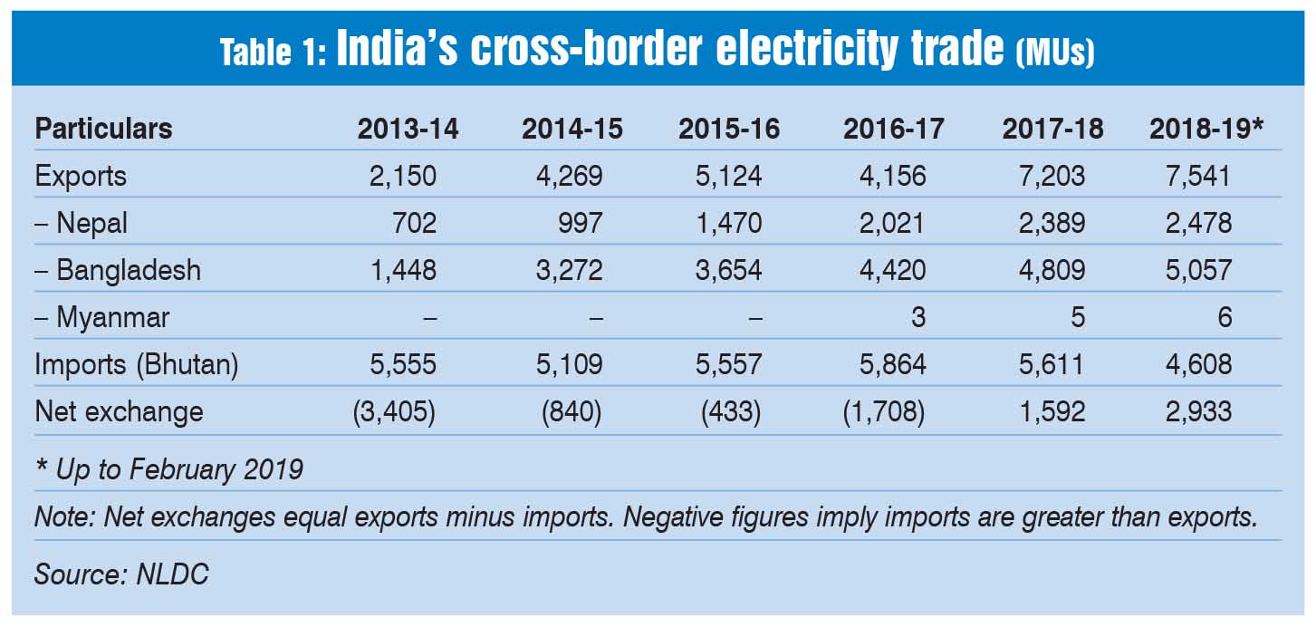 India currently trades electricity with four countries – Bhutan, Bangladesh, Nepal and Myanmar. It imports power from Bhutan while it exports to the other three (see Table 1). The annual quantum of trade is close to 13,000 MUs, with India being a net exporter since 2017-18. The clarity in the policy and regulatory framework further opens up trade prospects for India’s neighbours, such as Nepal and Bhutan, which are developing their hydropower potential with an eye on export markets. Power Line presents the key features of the CERC regulations…