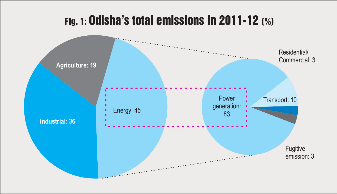 The power sector plays a vital role in the development of an economy. As per the MoEFCC, it is a major contributor to India’s total GHG emissions with a share of 44 per cent. In Odisha, power generation contributes to around 83 per cent of the energy sector emissions (Fig. 1). Odisha has a per capita emission of 2.35 tonnes, which is higher than the national average of 1.7 tonnes. It is thus essential to explore ways of limiting emissions from this emission-intensive sector. This article focuses on suggesting prevalent interventions on both supply and demand sides as well as devising strategies for implementing at the policy and market levels.