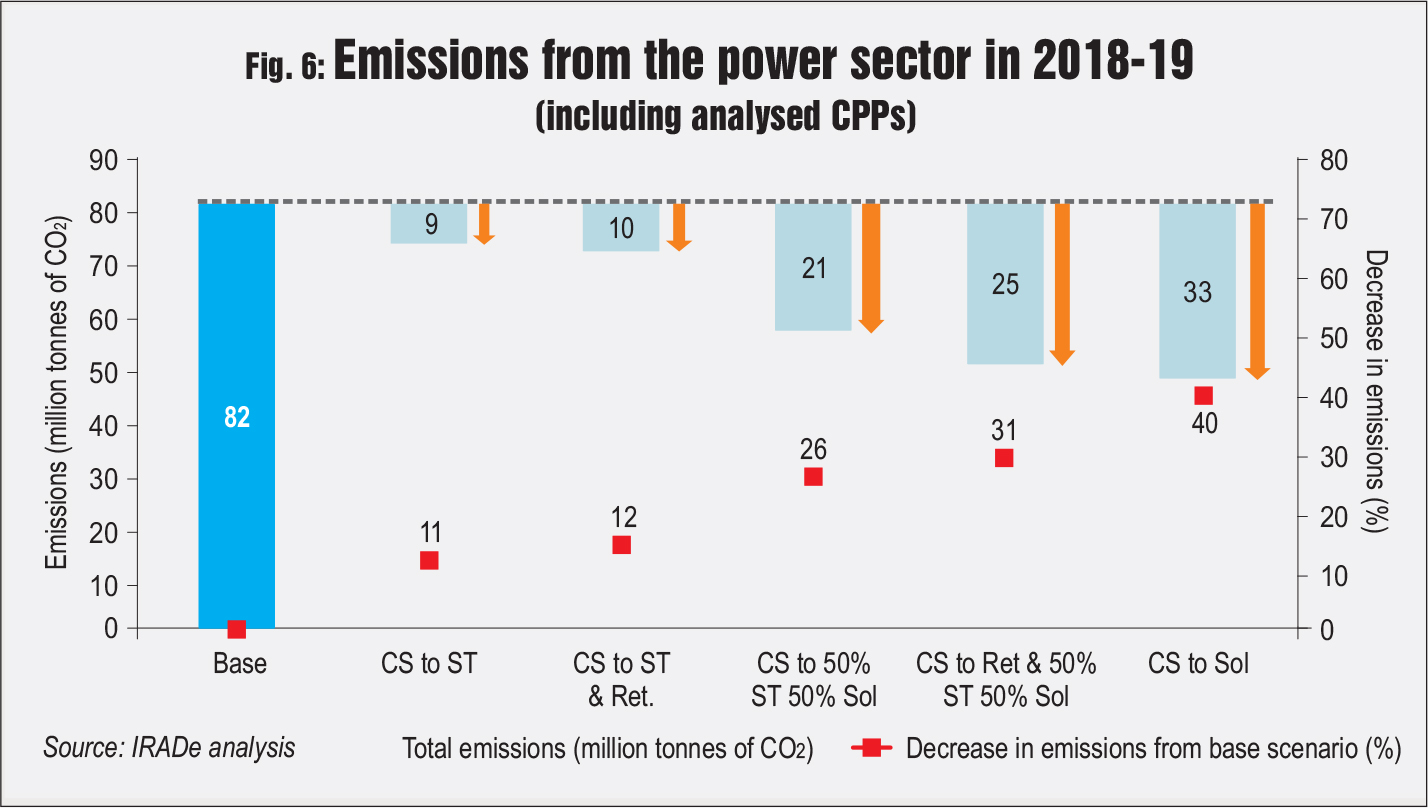 Fig. 6 shows that when all the analysed CPPs are shifted to solar, a 40 per cent reduction in emissions from the base scenario was seen. An economic analysis comparing the tariffs of CPPs with the average charge of high tension (HT) /EHT (extra high tension) in the state revealed that industries will incur huge losses while shifting to the grid.