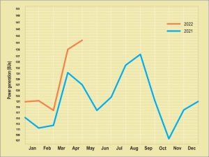 The total power generation stood at 141.75 BUs in April 2022. At around 48.81 BUs and 40.95 BUs, the central and state sectors respectively accounted for the major share in conventional power generation. Meanwhile, renewable energy generation stood at 15,106.82 MUs.