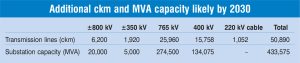 The planned additional transmission systems required for having 500 GW of non-fossil fuel include 8120 ct. km of High Voltage Direct Current Transmission corridors (+800 kV and +350 kV); 25,960 ct. km of 765 kV AC lines; 15,758 ct. km of 400 kV lines; and 1,052 ct. km of 220 kV cable at an estimated cost of 2.44 trillion.