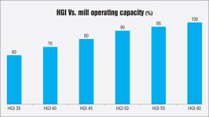 Hard grove index (HGI) is a measure for the grindability of coal. Grindability is an index, therefore, it has no unit and having grindability indices such as 40, 50, 60, 80, etc. Therefore, the harder the coal, the lower is the index number. The higher the HGI, the softer and more grindable is the coal. The higher the HGI, the higher is the mill loading (see figure).