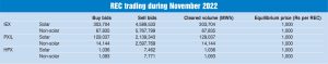 The electricity traded in the day-ahead market in November 2022 was 5,083.85 MUs at the IEX. The average market clearing price range was Rs 3.85 per unit to Rs 5.17 per unit at the IEX. The total volume traded in the real-time market in November 2022 was about 1,406.88 MUs at the IEX.