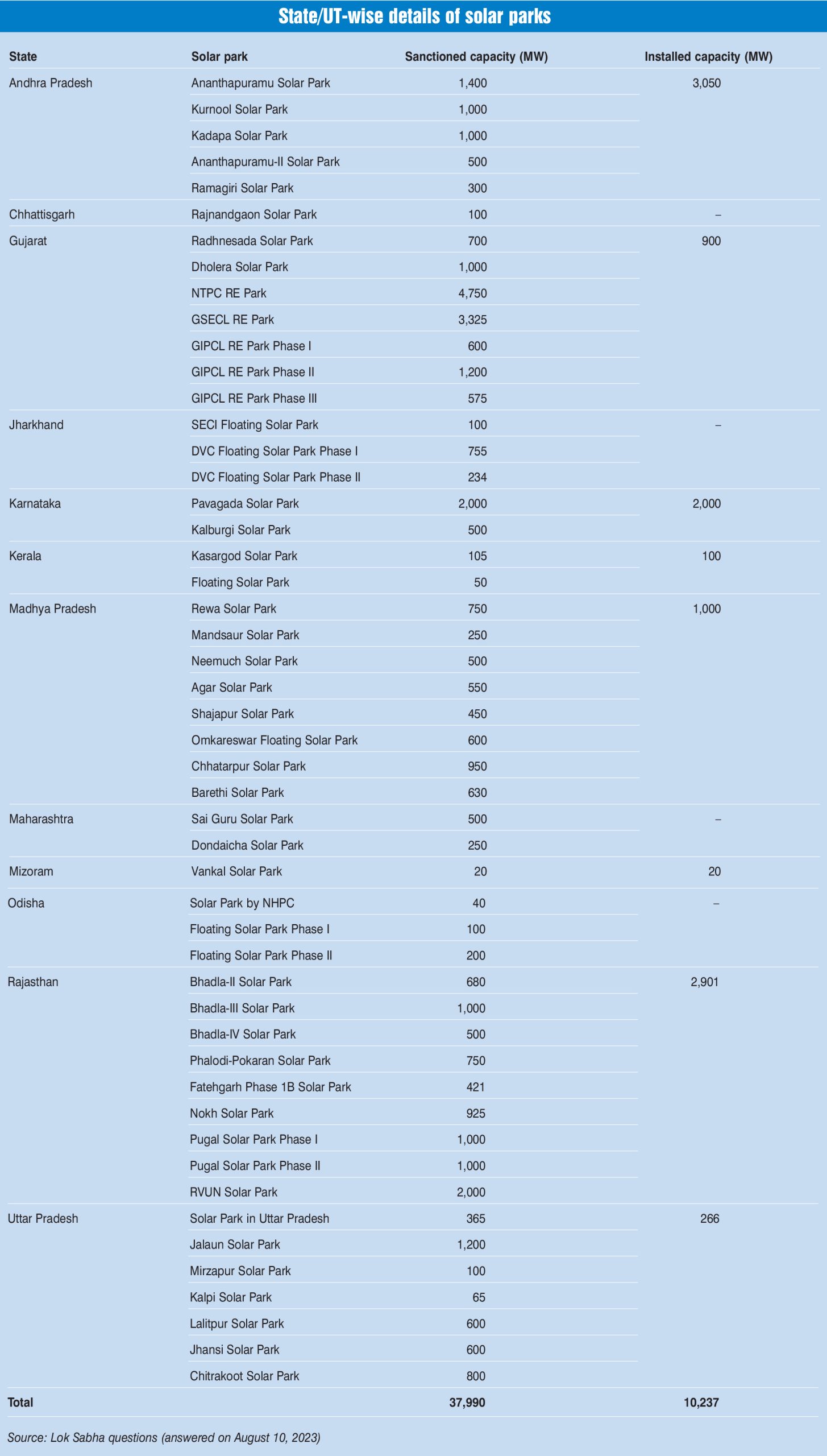 Key Statistics: Status of solar parks across states