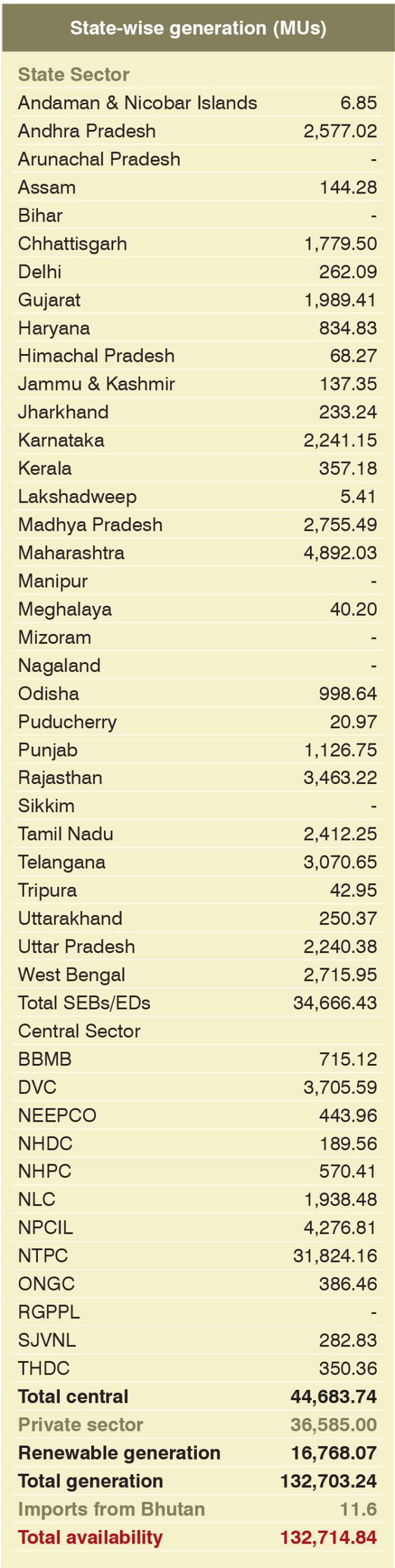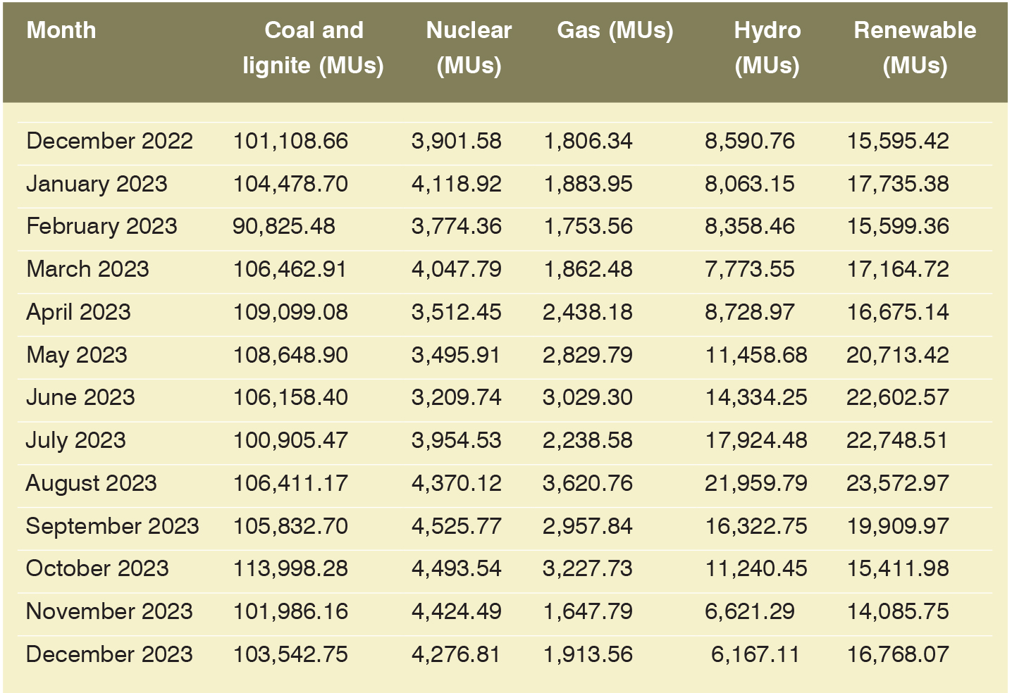 Total power generation stood at 132.7 BUs in December 2023. At around 44.7 BUs and 36.6 BUs, the central and private sectors respectively accounted for the major share in conventional power generation. Meanwhile, renewable energy generation stood at 16,768.07 MUs.