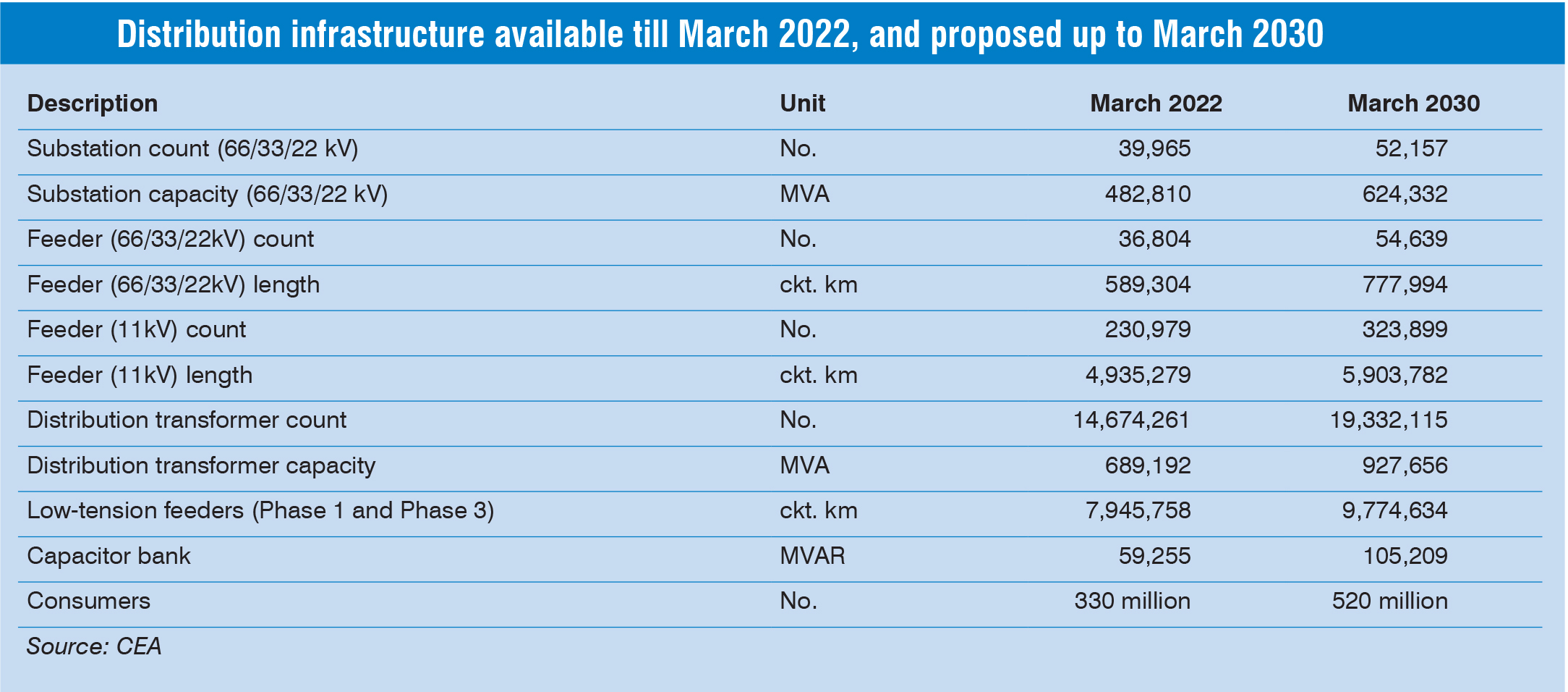 The power distribution sector of India is a crucial link in the electricity supply value chain. It has been facing challenges such as unreliable power supply, high aggregate and technical (AT&C) losses, old and overloaded networks, low-cost recovery, and low consumer satisfaction. This has led to extensive financial stress on discoms, which has cascaded across the power sector value chain. The government has been giving greater attention to the distribution sector with various reform measures and rules for improving the financial viability of distribution utilities and enabling them to provide 24×7 reliable and quality power to consumers. Distribution infrastructure is essential to meet the load till 2030. As such, the Central Electricity Authority (CEA), in consultation with distribution utilities, has prepared a draft Distribution Perspective Plan till 2029-30. It accounts for the pan-Indian distribution infrastructure planned by discoms to meet the projected demand by 2029-30.