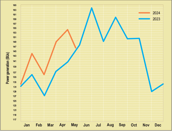Total power generation stood at 167.41 BUs in May 2024. At around 53.97 BUs and46.65 BUs, the central and private sectors respectively accounted for the major share in conventional power generation. Meanwhile, renewable energy generation stood at 22,501.56 MUs.