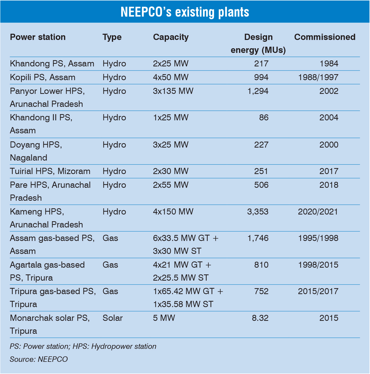 NEEPCO’s portfolio comprises seven hydropower plants with a total capacity of 1,525 MW, three gas-based plants totalling 527 MW and one solar project of 5 MW, bringing the total installed capacity to 2,057 MW.