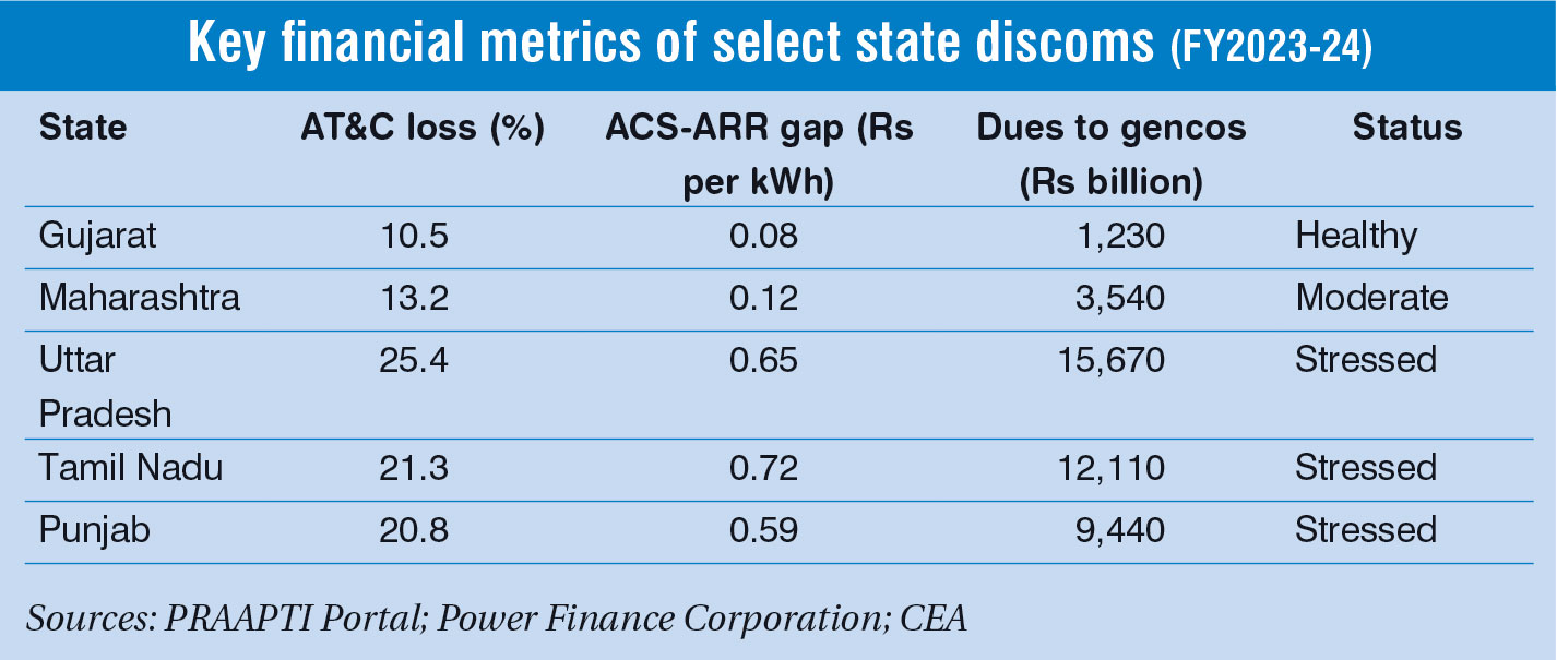 Financial stress and performance indicators: Discoms are facing massive revenue losses, primarily due to power theft, technical losses and delayed subsidies. Despite efforts under the Ujwal Discom Assurance Yojana (UDAY) and Revamped Distribution Sector Scheme (RDSS), several states have failed to achieve financial turnaround. Even with support from schemes such as UDAY and the late payment surcharge (LPS) mechanism, dues continue to rise, straining the cash flows of generators.