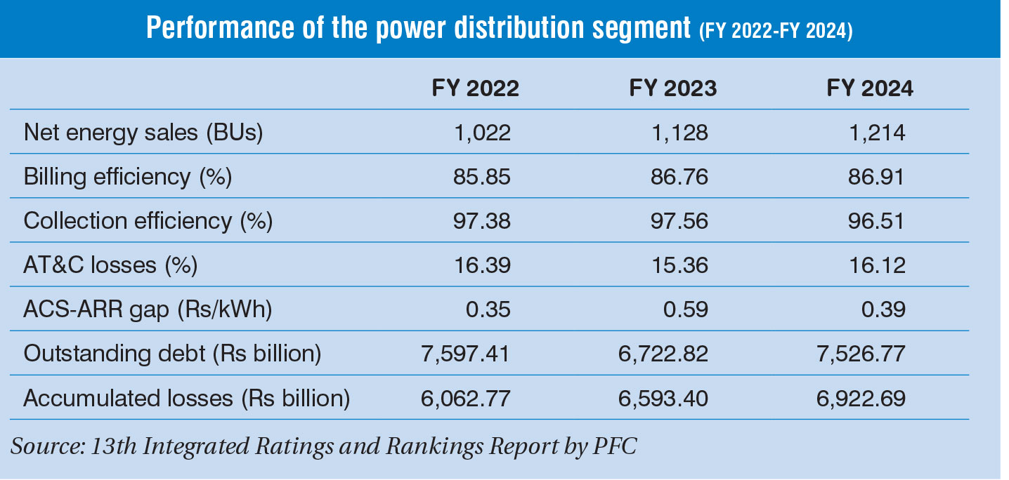 Billing efficiency was below the 90 per cent mark. Notably, private discoms improved their billing efficiency from 87.68 per cent to 88.22 per cent, while power departments increased their efficiency from 86.54 per cent to 87.27 per cent.