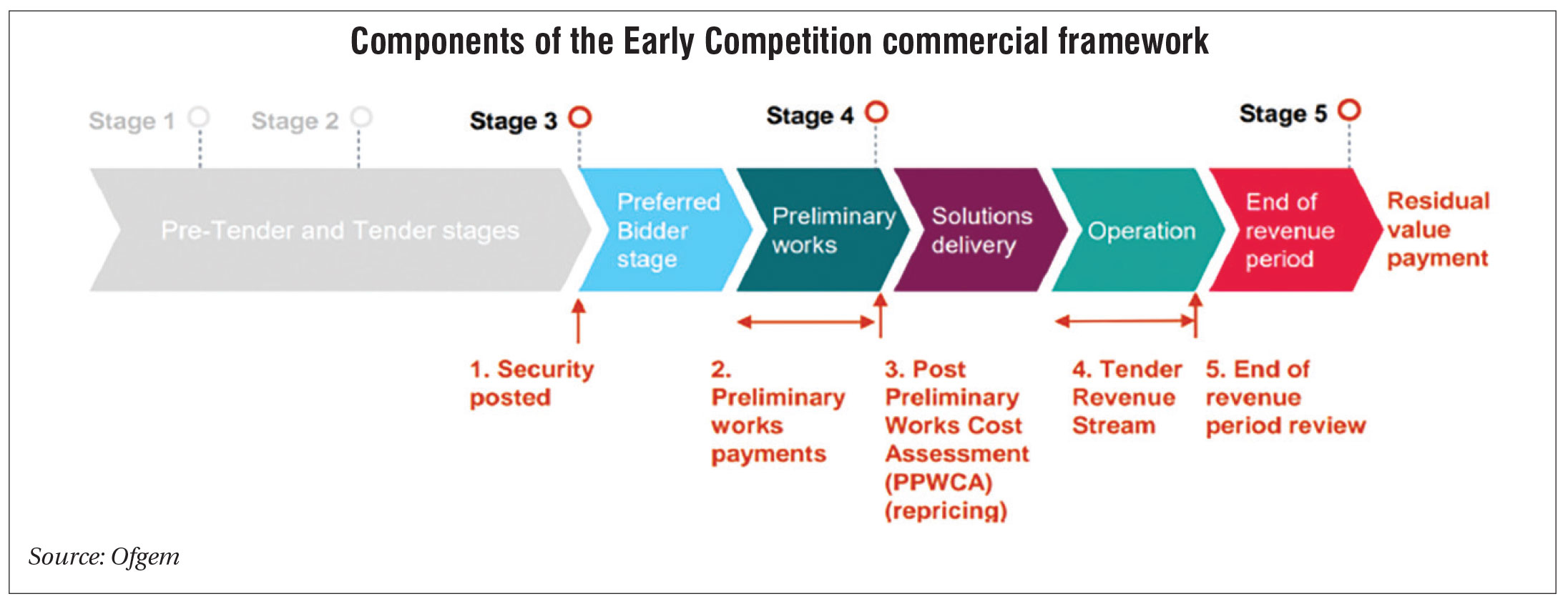 - Preliminary works payments: Ofgem has allowed payments for preliminary works (such as surveys, design, consents and stakeholder engagement), capped at 50 per cent of forecast preliminary costs, to reduce equity risk and encourage participation. Supply chain engagement will be encouraged through tender requirements, without customers having to fund down-payments to suppliers to avoid stranded costs. This whole approach mirrors elements of incumbent TO treatment and levels the playing field for new competitors.