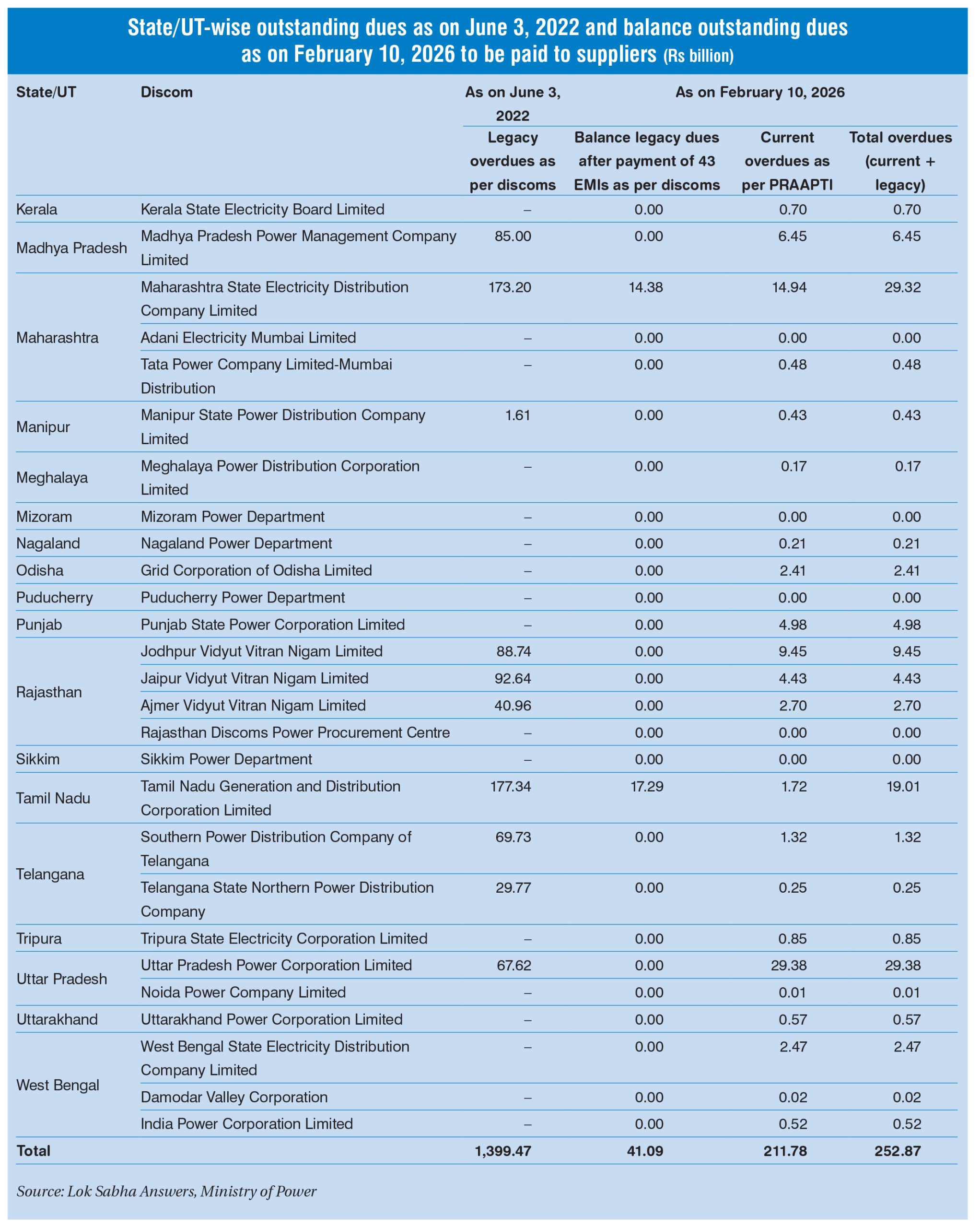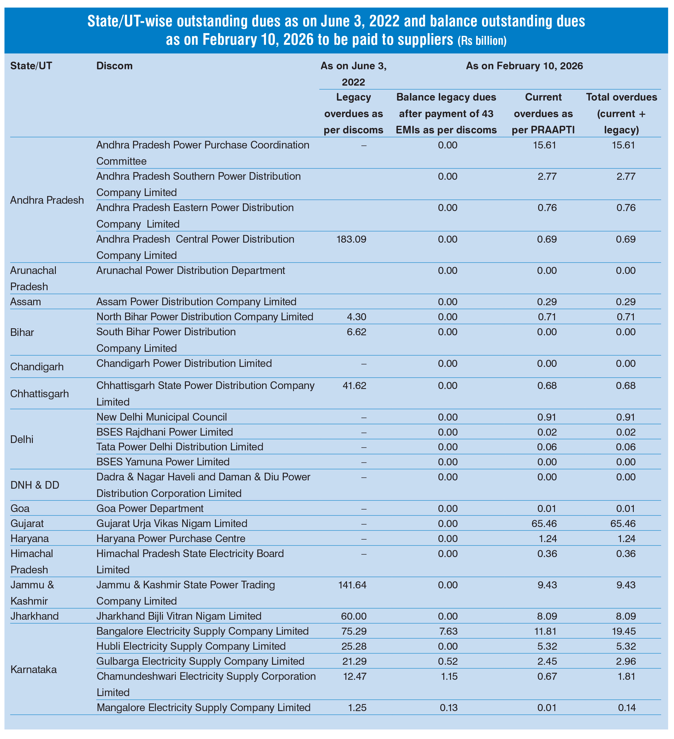 HomePower DataKey Statistics: Legacy dues of discoms